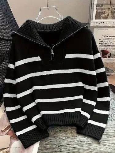 سويتشرت مقلم نص سوستة | موديل عملي