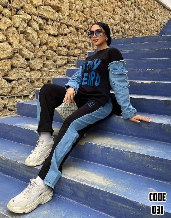 الموديل💫💫سوت قطعتين مطعم جينز وهم بجد😘😘